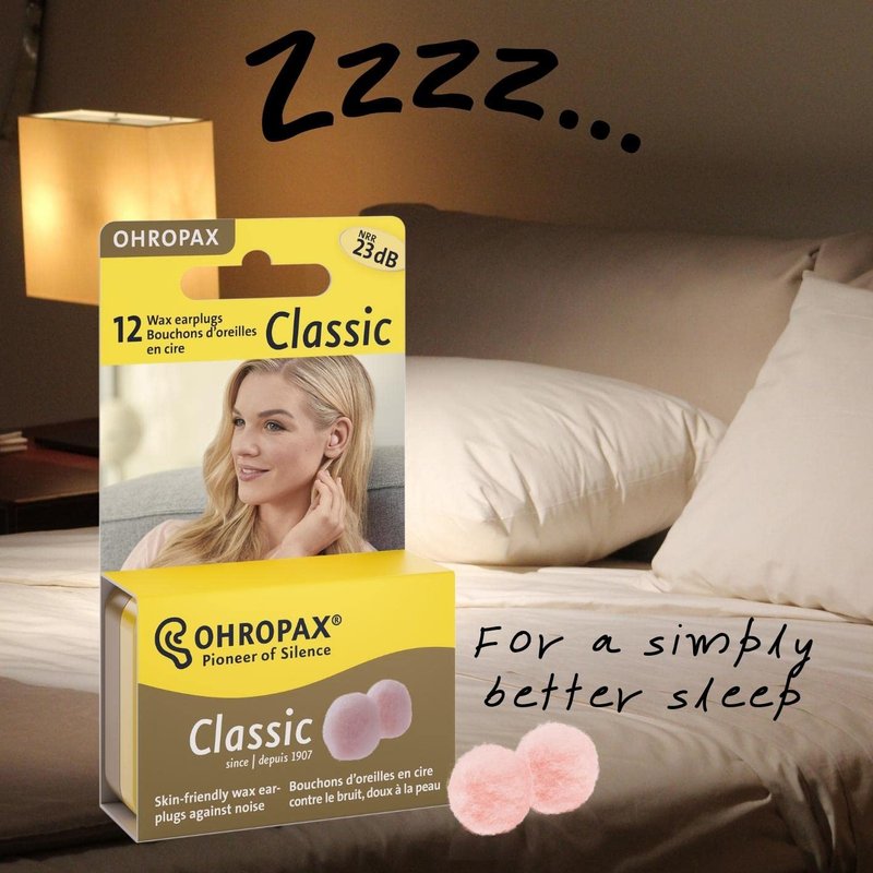 For over 100 years, these small spheres have been bringing peace and quiet to our hectic, noisy world, and have set an entire company in motion. OHROPAX Classic has been our tried-and-tested noise protection product since 1907. The unique recipe – cotton wool soaked in a mixture of Vaseline and various paraffin waxes – was so successful from the very beginning that it remains almost unchanged to this day. OHROPAX Classic is very comfortable to wear, making it the perfect way to get a restful night’s sleep without disturbances. It is also a convenient aid for general relaxation and for use during meditation exercises, reading, and any work that requires concentration, DIY activities, and loud music. Thanks to its tight seal, OHROPAX also offers protection against moisture and wind. The discrete-colored wax earplugs can be adapted to fit every ear and significantly reduce the effects of noise exposure. The soft, skin-friendly material fits securely into the ear, making the earplugs extremely comfortable to wear and ensuring there is no feeling of pressure.