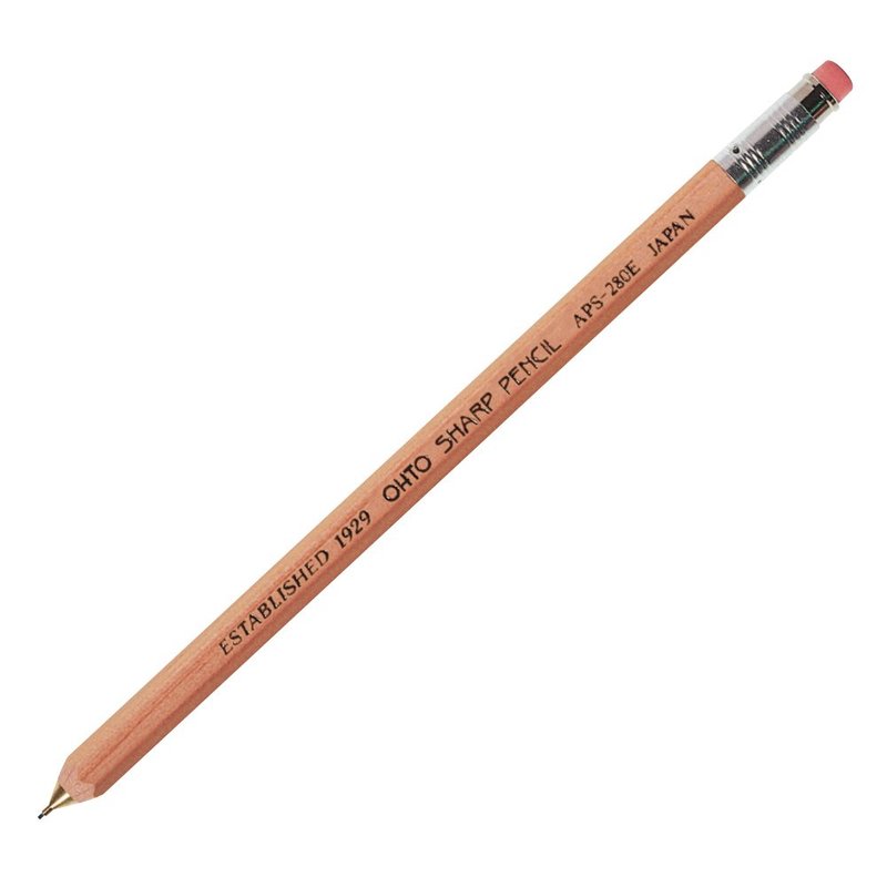 - OHTO Mechanical Pencil Wood Sharp with Eraser, 0.5mm, Natural Wood Color Body