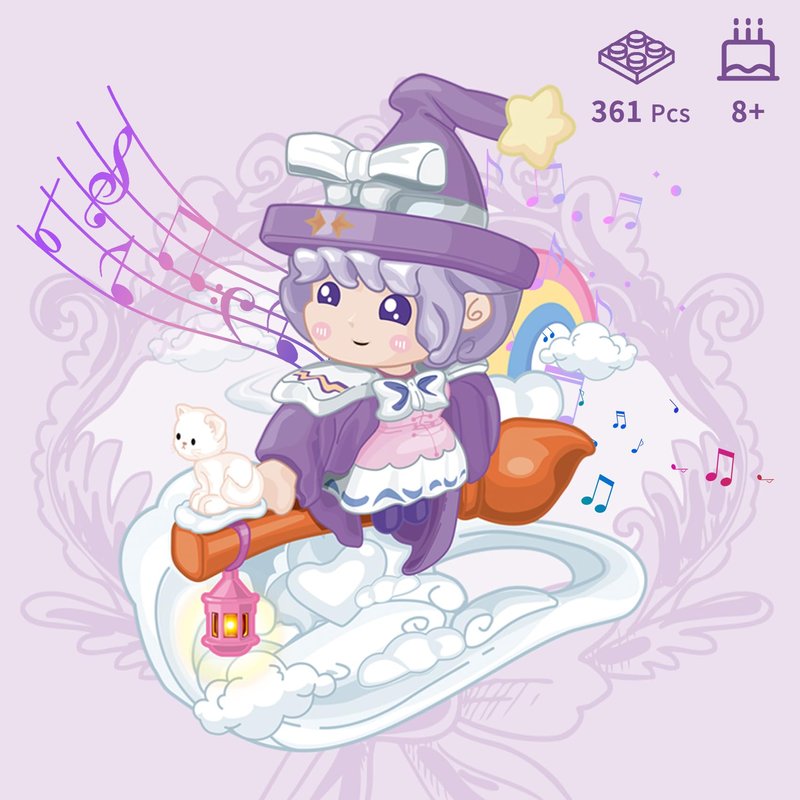 Oichy Music Box Building Toys, Little Witch DIY Music Box Kit for Kids, Fairy Tale Series Building Blocks Set Educational Toys Birthday Gift for Adults Girls Boys Ages 8+(316 PCS)