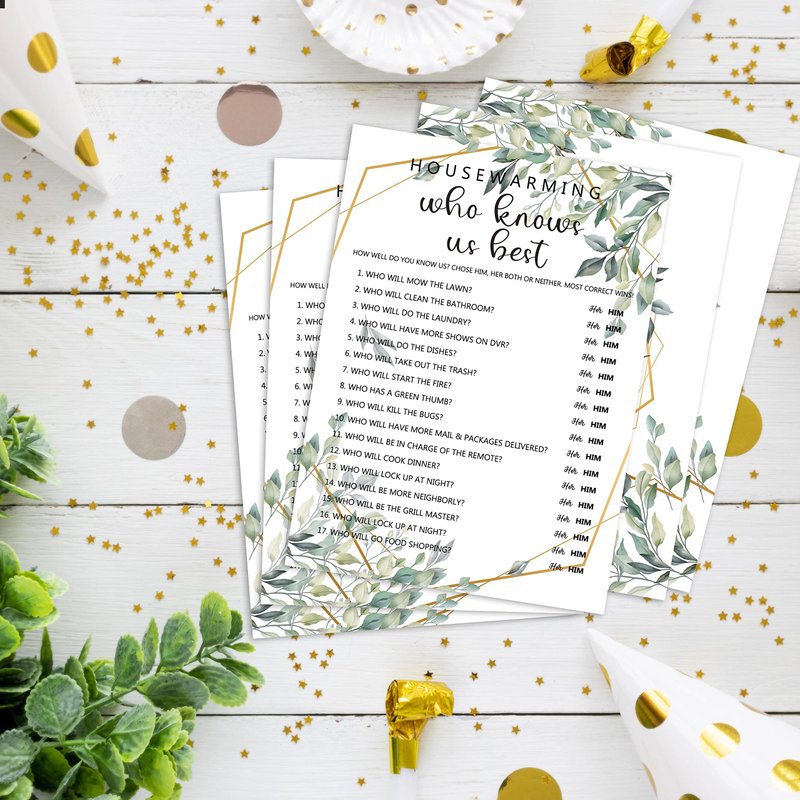 OICPYD Housewarming Party Games, Who Knows Us Best, Greenery New Home, New House, New Homeowner Party Games Cards, 30 Sheets Each Pack