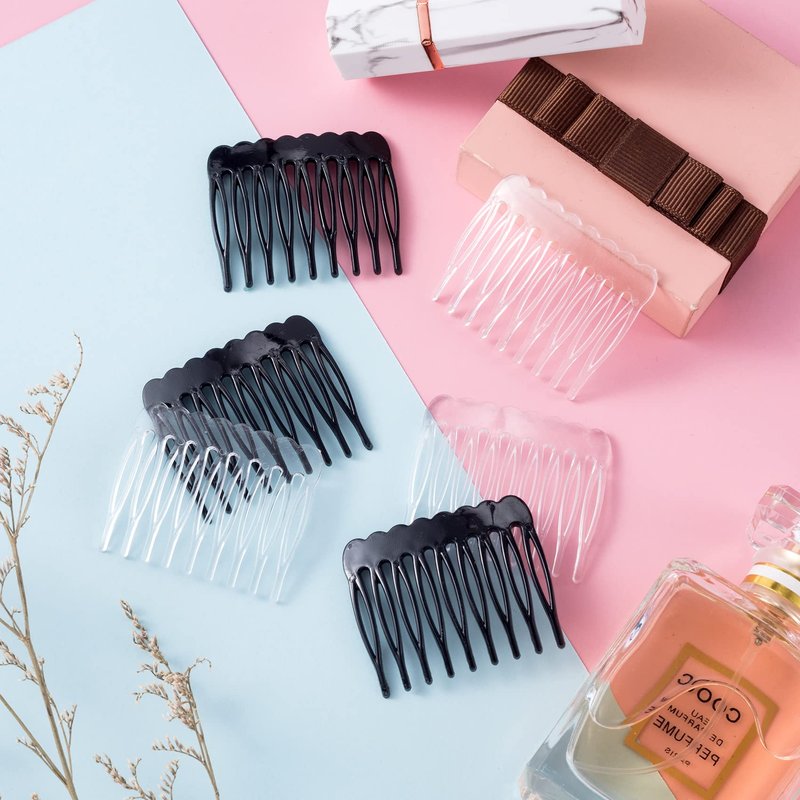 Package Included: You will receive 30pcs plastic hair combs in the package, including 15pcs black hair combs and 15pcs transparent hair combs. Chic colors and enough quantity for you to match most hairstyles and use for long time.
