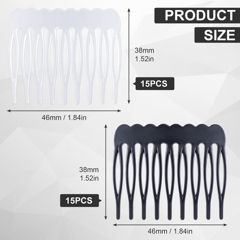 - 【Package Included】: You will receive 30pcs plastic hair combs in the package, including 15pcs black hair combs and 15pcs transparent hair combs. Chic colors and enough quantity for you to match most hairstyles and use for long time.