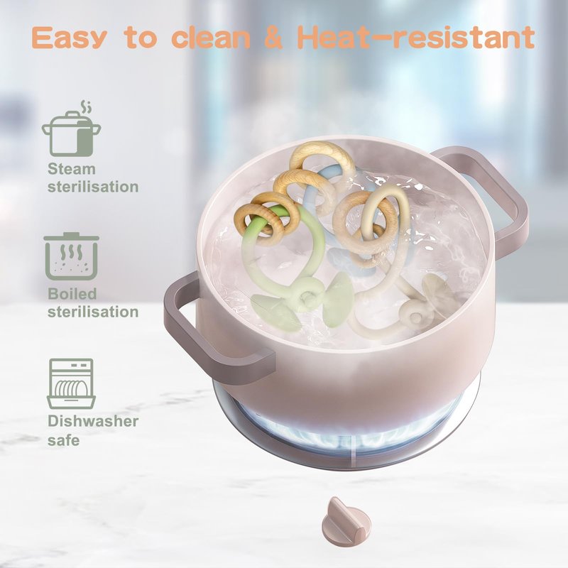 - 【Easy to Clean and Maintain】This teethers for babies 3-6 months is dishwasher friendly, very simple to clean and maintain! The silicone part of the toy can be sterilised by boiling water at high temperature, or steam and UV. The wooden rings can be rinsed clean with water or wiped with a damp cloth after use, making cleaning convenient and burden free, ensuring safety and hygiene for baby's every playtime.