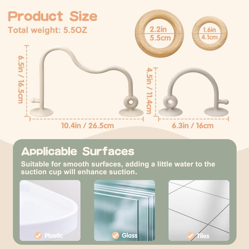 - 【Powerful Suction, No Fear of Pulling】Our high chair suction cup toys are made with a new suction cup process with powerful suction, which can be firmly fixed on high chairs, tables or any smooth surfaces, babies can't pull them off easily. The roller coaster design of these Montessori toys allows baby to move the rings from one end to the other, and the sound of the rings crashing together keeps baby focused and happy. Let parents easily get rid of the worry of throwing toys!