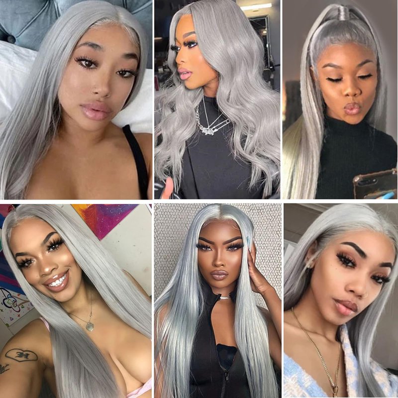 OiMiGO Straight Lace Front Wigs Human Hair Pre Plucked 13x4 HD Lace Frontal Wigs Human Hair 180% Density Invisible HD Transparent Glueless Wigs Human Hair for Women With Baby Hair(#Grey,20Inch)