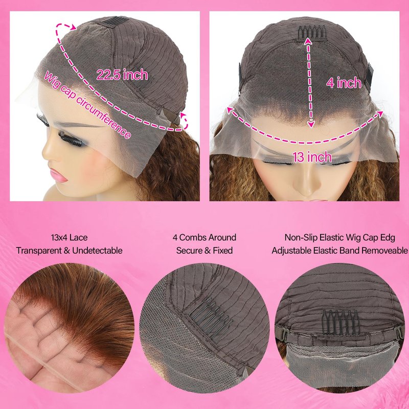 - [ 13x4 HD Lace Frontal Wig Cap Size ] 22.5" cap (average size) with 4 combs and adjustable straps, durable & easy to adjust, fits for most customers perfectly. Highlight human hair wig with 13x4 Inch HD lace, breathable & durable lace material make it more comfortable. 13X4 free part can make any style as you want.
