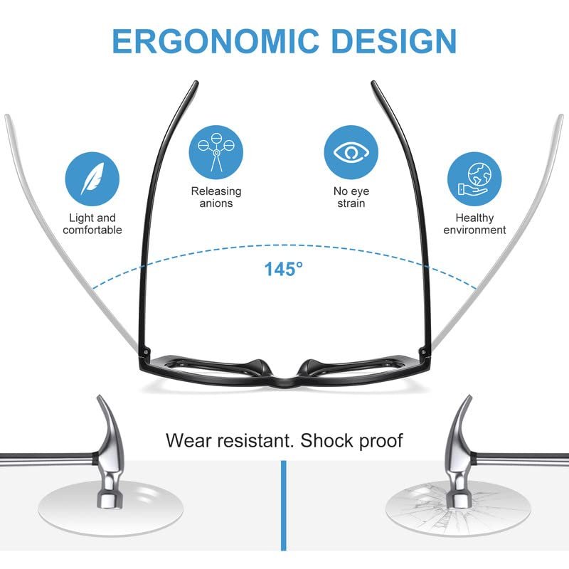 Anti blue light blocking glasses block some of the high-energy blue light emitted from electronic devices like Phones, TVs. It goes by a few different names. You might hear them called computer gaming glasses, anti glare radiation reflective migraine eye glasses or blue light filter UV PC glasses Sometimes, they're just called blue blockers glasses for women men and blue screen gamer glasses. and it can be use for adult fashion fake glasses. How best bluelight block glasses work? When something produces light, different colors vibrate at different wavelengths. blue tinted glasses and blue ray glasses can be block harmful blue light. Mens protective blue light blocking glasses and womens no glare blue light blocking safety clear lens glasses, The glasses frame lenses are designed to help reduce the occurrence of digital eye strain and avoid circadian rhythm cycle disruption, affecting sleep and overall well-being. bue light glasses block a percentage of this light with a special coating that reflects some of the blue light away from your eyes. Glare free glasses and uv protection glasses are often associated with two potential benefits: reduced eye strain and better sleep. Research shows that wearing non prescription bluelight blocker glasses three to four hours before bedtime can lead to better and more restful sleep. Do you really need glare reducing glasses? It might help to approach blue light glasses from a professional point of view.