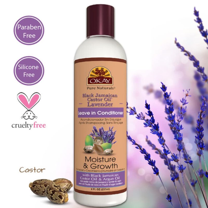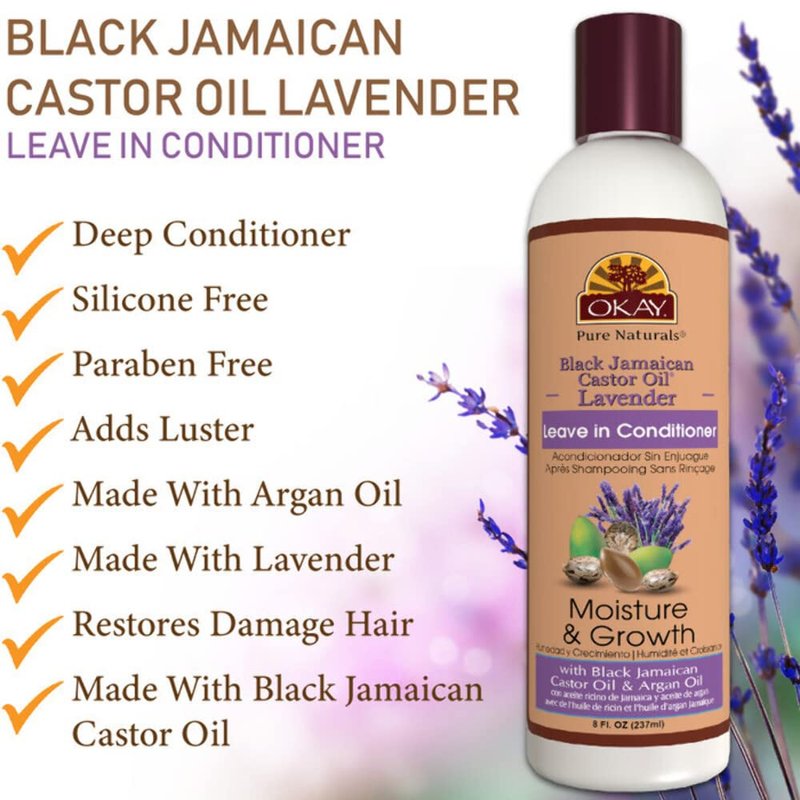 Okay Black Jamaican Castor Oil and Leave-In Conditioner For All Hair Types, White, Lavender, 8 Ounce