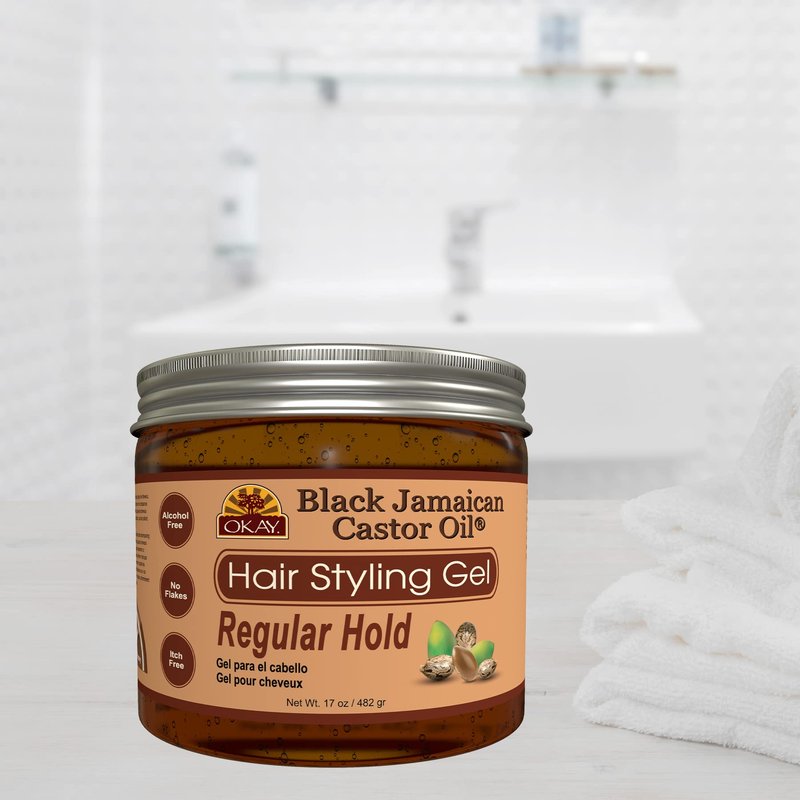 OKAY BLACK JAMAICAN HAIR STYLING GEL, REGULAR HOLD 17OZ