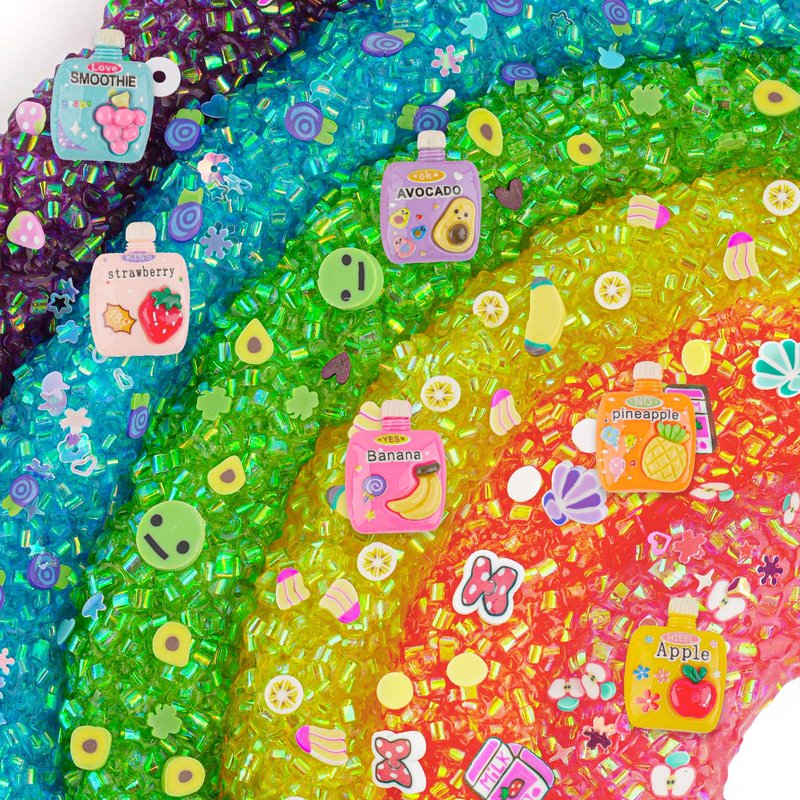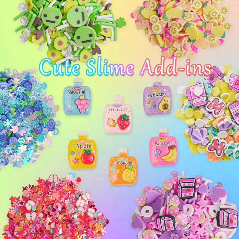 - 【Rainbow Bingsu Slime Kit】 This rainbow slime kit includes 6 colors of bingsu slime: red slime, orange slime, yellow slime, green slime, blue slime & purple slime. 6 kinds of slime charms & 6 kinds of slime add-ins. Each jar holds 60 ml bingsu slime, totally 360 ml. The moderate volume of 60 ml is perfect for kid's small hands to play with!