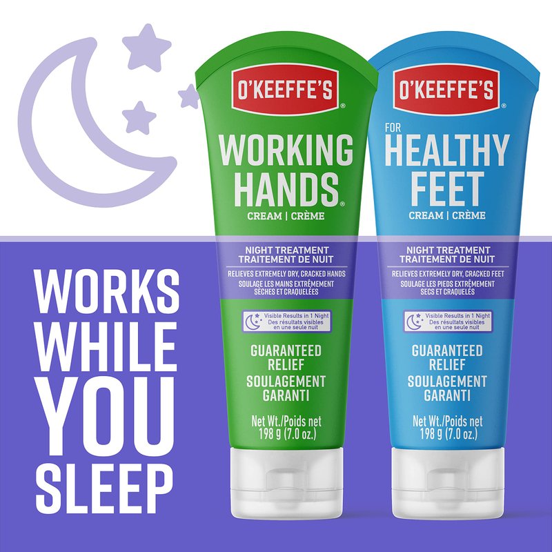 - Overnight Relief: O’Keeffe’s Working Hands Night Treatment is a calming yet intense, restorative hand cream for cracked hands that works while you sleep.