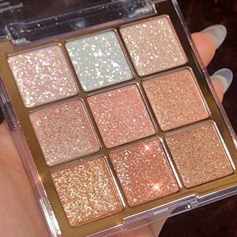 Okerker 9 Colors Glitter Shimmer Eyeshadow Makeup Palette, Korean Natural Neutral Eye shadow Palettes Highly Pigmented Long Lasting Waterproof Blendable sombras para ojos Pink White Golden Brown