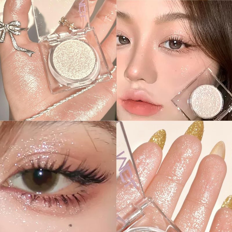 Okerker Shimmer Glitter Eyeshadow Palette, Korean Eye Glitter Makeup, Ultra-Blendable, Sparkle Silver Champagne Gold Eye Shadow, Single Shade Metallic Pigmented Color