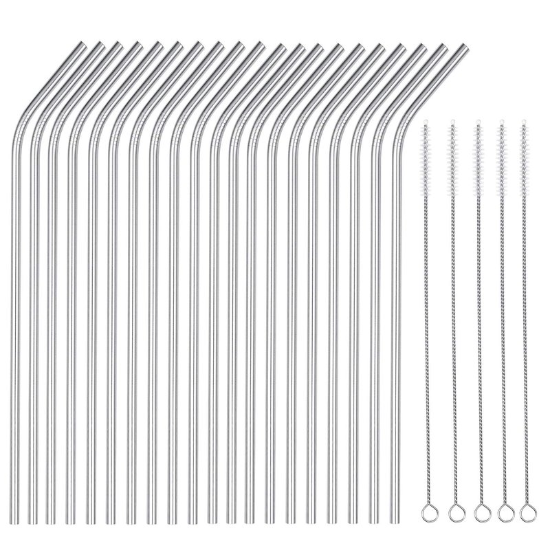 - Include 20 Bent metal straws and 5 pcs brush can clean, the straws all through those straws can easily fit through the lid slot of your 20oz stainless rumbler tumbler.