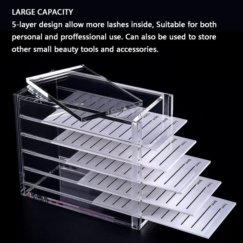 - LARGE CAPACITY: The lash tray organizer contain 5 lash tiles.5-layer design allow more lashes inside, Suitable for both personal and proffessional use. Can also be used to store other small beauty tools and accessories