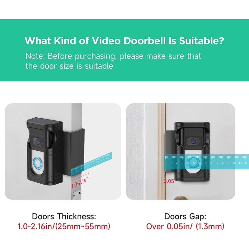 - COMPATIBLE: The product will be 360°encases your video doorbell, compatible with Video Doorbell 1/2/3/3 Plus/4/2nd Gen(2020 Release). Door Gap Size: 0.6 IN - 2.5 IN; Door Thickness: 59 IN - 255 IN. (Package Does Not Include Doorbell Equipment)