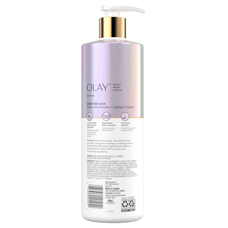Olay Firming & Hydrating Body Lotion for Women with Collagen, 24hr Moisturizing, Vitamin E & Vitamin B3 Complex, Fast Absorbing Formula, 17 fl oz
