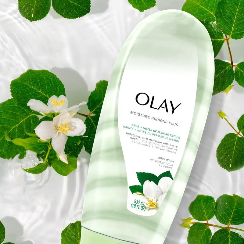 Olay Moisture Ribbons Body Wash with Shea and Notes of Jasmine Petals, 532 mL, White and Green, Pack of 1