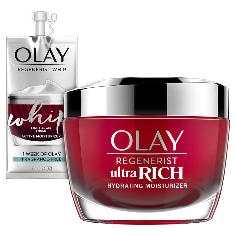 Olay Regenerist Ultra Rich Face Moisturizer, 1.7 Oz + Whip Face Moisturizer Travel/Trial Size Gift Set