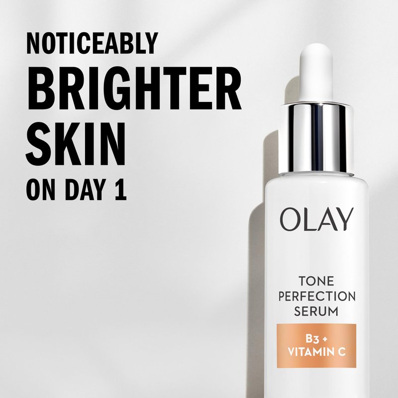 - CONCENTRATED INDULGENCE: Got the dull skin blues? Perk up with Olay’s powerful Tone Perfection. This serum, formulated with Vitamin B3+ Vitamin C, penetrates your skin’s surface to brighten a dull and uneven complexion