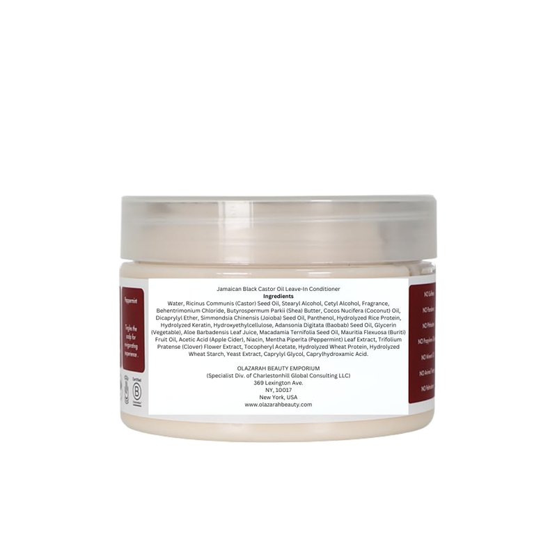 - Jamaican Black Castor Oil Infusion: Our leave-in conditioner harnesses the natural strength of Jamaican Black Castor Oil, renowned for its ability to strengthen hair follicles, reduce breakage, and promote healthy growth.