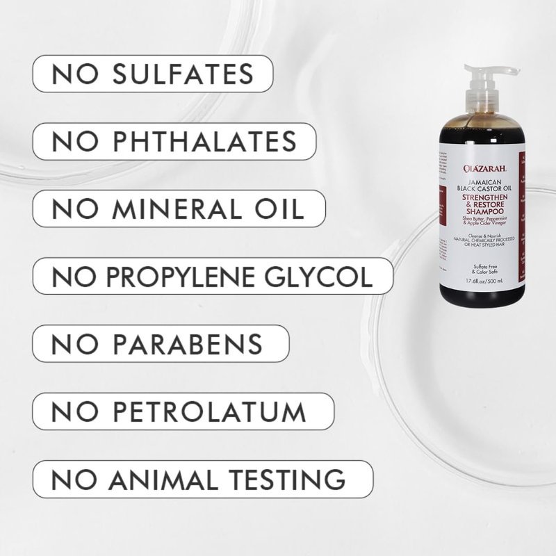 OLAZARAH Jamaican Black Castor Oil Strengthen & Restore Shampoo with Shea Butter, Peppermint and Apple Cider Vinegar to Cleanse & Nourish, 17 Fl oz