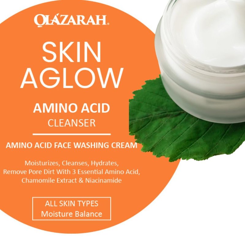 OLAZARAH Skin Aglow Amino Acid Face Cleanser w/Chamomile Extract, Niacinamide | Moisturizing Face Washing Cream for All Skin Types