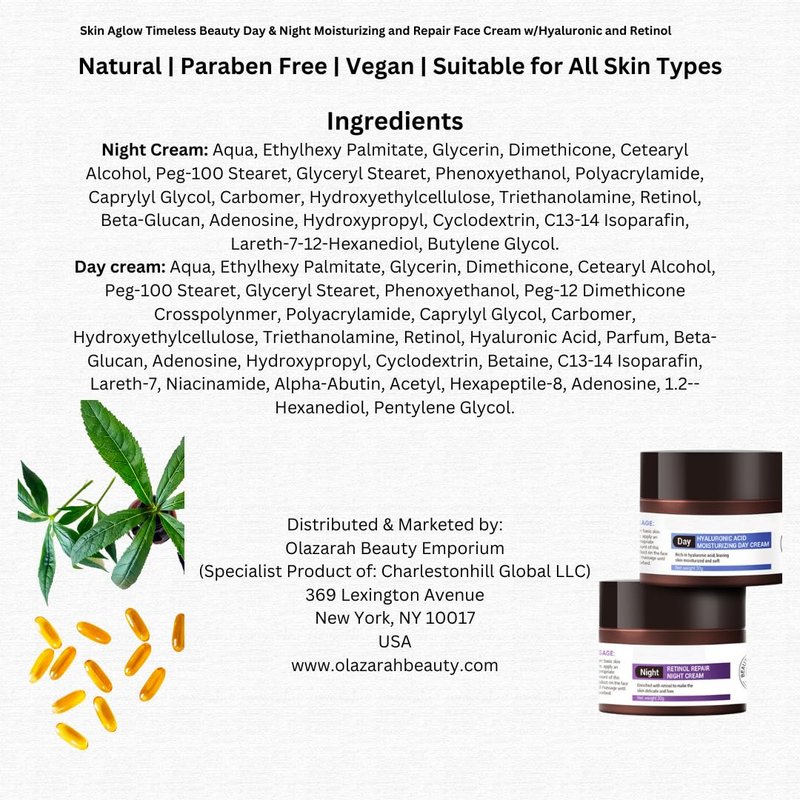 OLAZARAH Skin Aglow Anti-Aging Moisturizing and Repair Face Day Cream w/Hyaluronic Acid, 1.05 oz (packaging may vary)