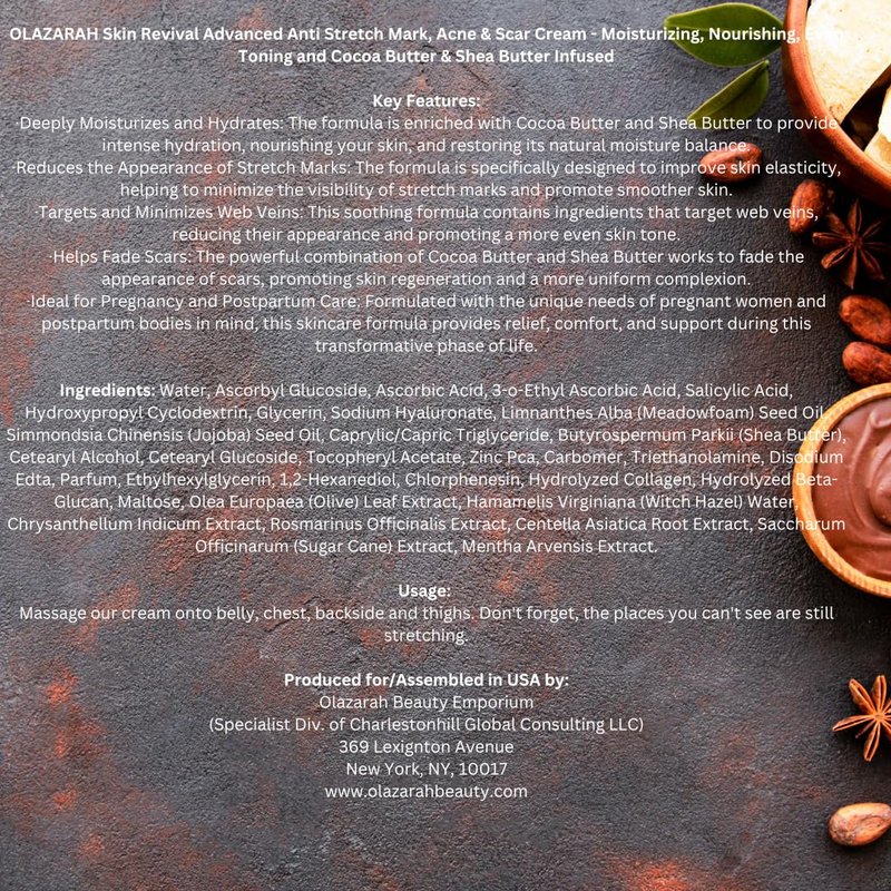 - Anti-Stretch Mark Properties: Formulated with key ingredients like hydrolyzed collagen and sodium hyaluronate, this cream helps to improve the appearance of stretch marks, promoting skin elasticity and reducing the visible signs of stretching.