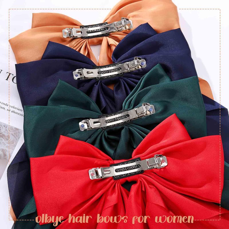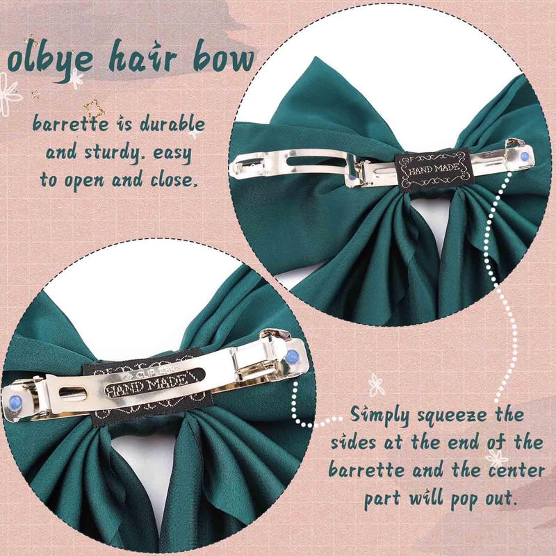 - Bows for women are made of high quality silky satin, soft and comfortable to the touch, the huge shape and bright color are absolutely eye-catching, you will gain a lot of compliments when you wear hair bow clip. The barrette is sturdy, easy to open and close, just squeeze both sides at the end and the center part will pop out.