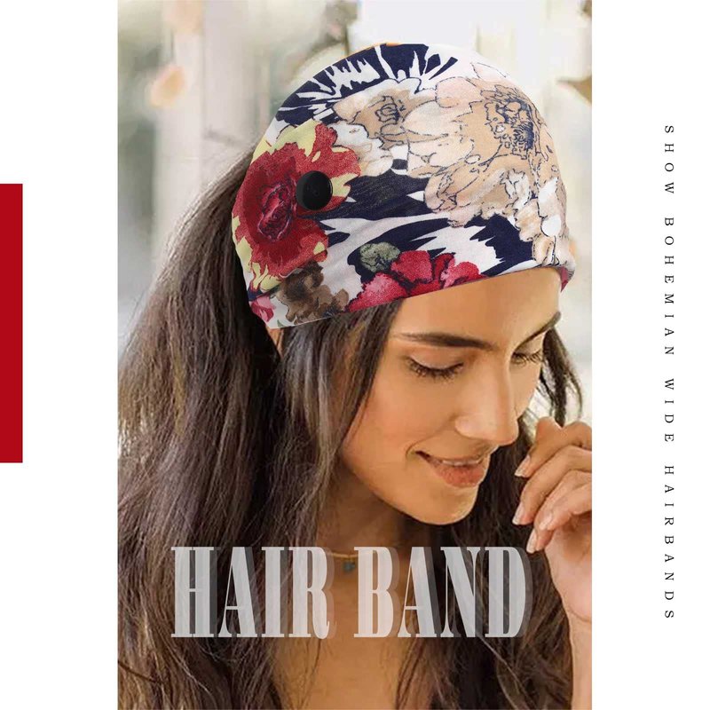 - Bohemian Headbands for Women Non Slip Hairbands is approx 5.9*9.8 inches (15*25 cm),free size fits most women,headband with buttons for face mask make you look chic and special,easy to use and convenient to hold your hair when making up,bath or running.