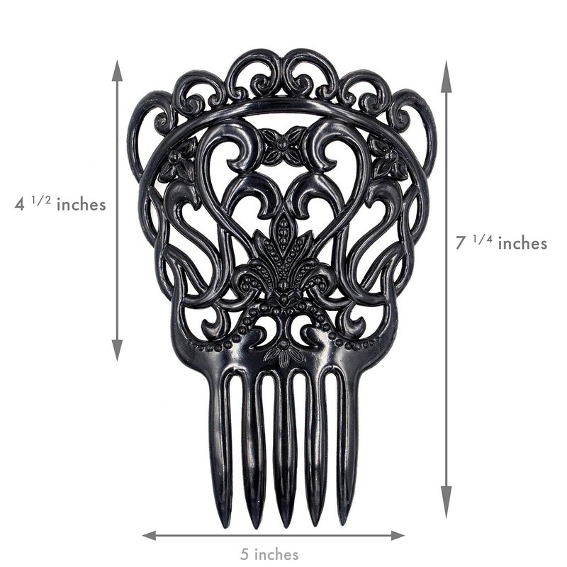 Ole Ole Flamenco Hair Comb for Dancers with Ornamental Design Spanish Hair Pins for Dancers (Black Model II)