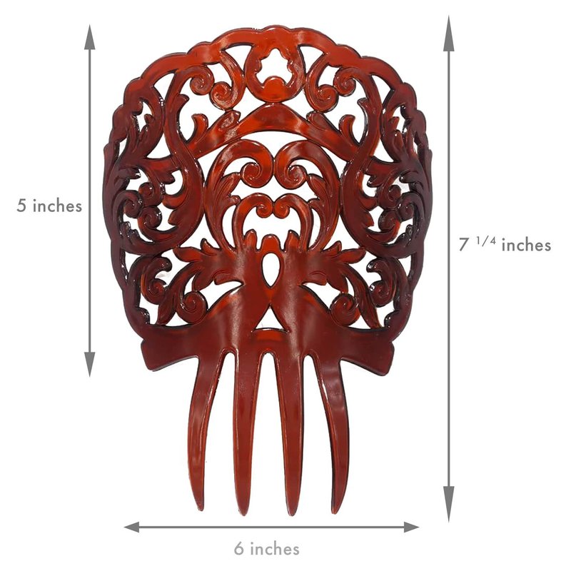 This Flamenco comb (Peineta Flamenca) is the ideal accessory for flamenco hairstyles. It measures approximately 5.9 x 7 inches (150 x 180 mm) and weighs 1.4 oz (40 gr). Crafted from durable hard plastic