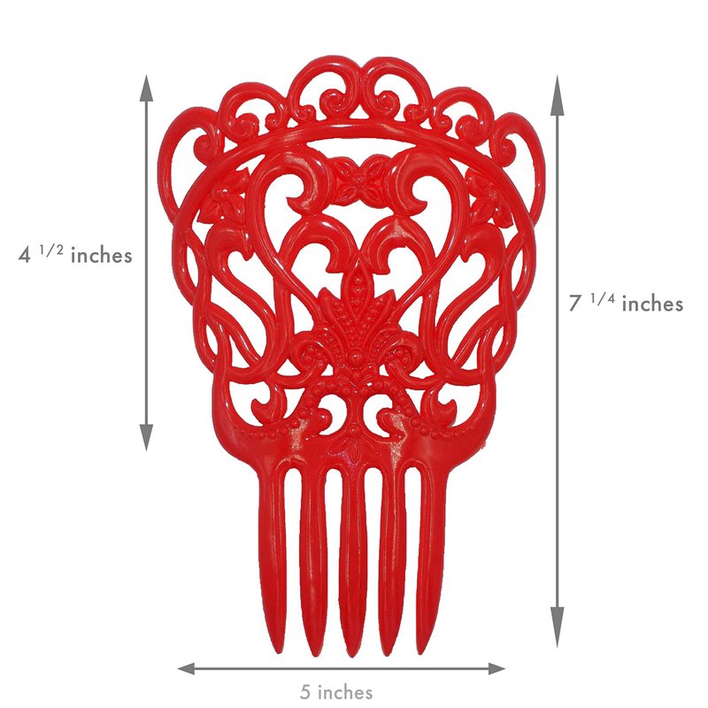 Ole Ole Flamenco Hair Comb for Dancers with Ornamental Design Spanish Hair Pins for Dancers Model II (Red)
