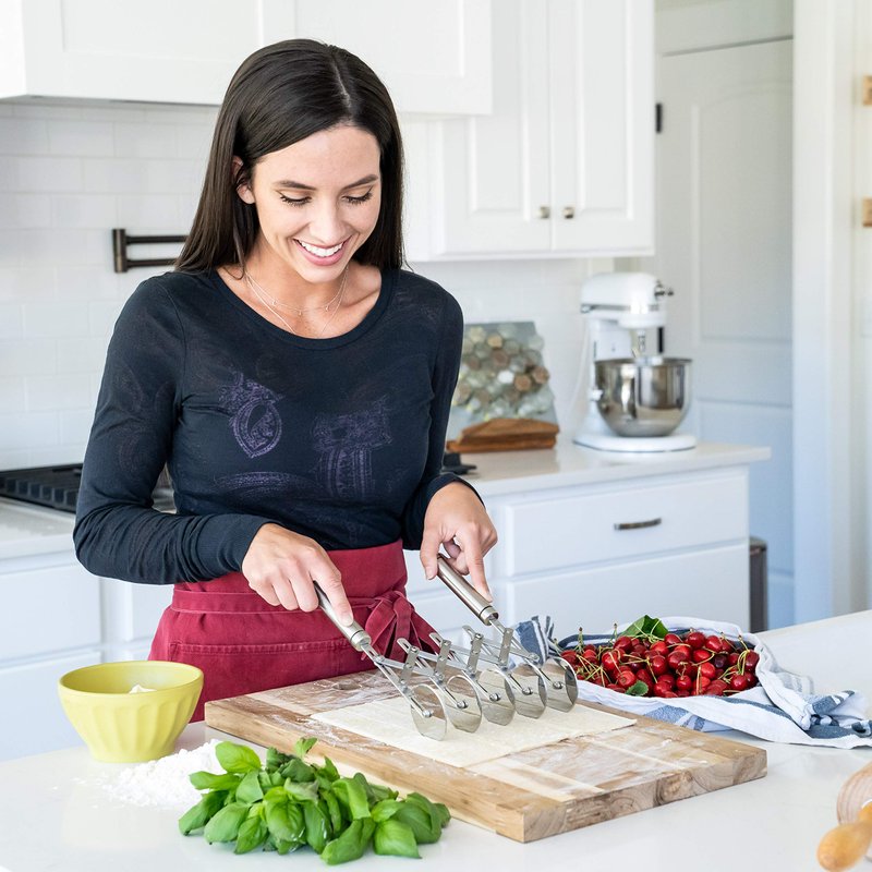 While other multi wheel pasta tools ONLY cut multiple slices, the Oleex 5-Wheel Accordian Cutter Set ALSO cuts Ravioli, flute-edged cookies, and single slices of wood fired pizza! Because when you order the 5-Wheel, we give you a Dual Ravioli/Pizza Cutter as well. Two pasta / pizza tools in one pack, for HUNDREDS of Dough-licious Delights! Because we believe, no dough should get left behind!
