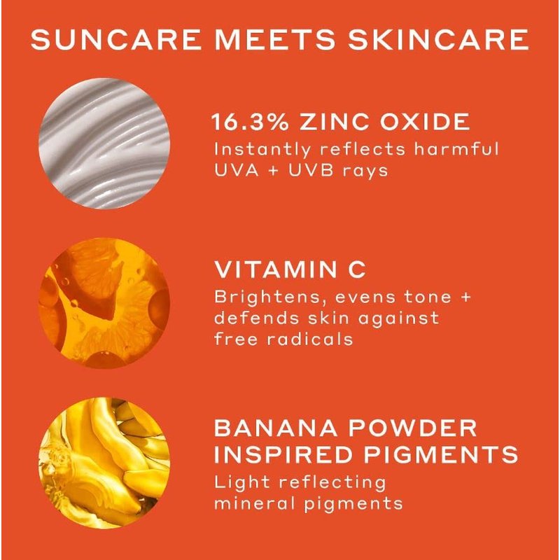 A 100% mineral sunscreen, with enhanced vitamin C and 16.3% zinc oxide, that protects skin against UVA and UVB rays, and corrects and prevents visible signs of sun damage, including dark spots, fine lines and wrinkles.