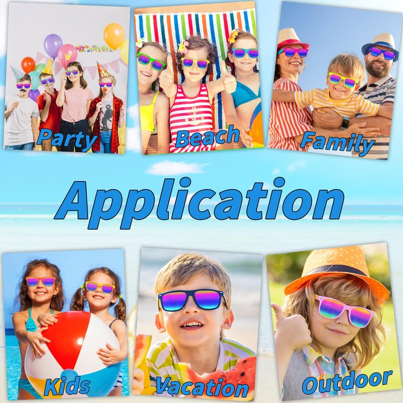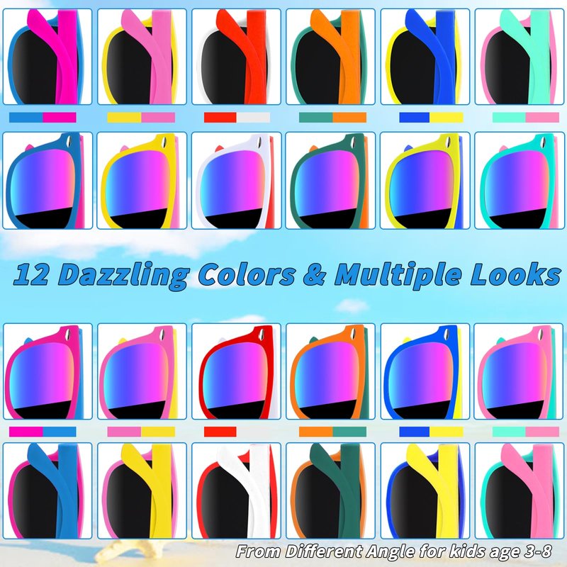 - Kids Sunglasses Bulk : you will get 60 pieces of summer beach party glasses in 12 colors, 5 in each color, sunglasses for kids are suitable for schools, summer camps, clubs and other groups, kids glasses are cute, colorful, and a favorite among unisex children. Get these shades on, bulk sunglasses will change your events from ordinary to cool