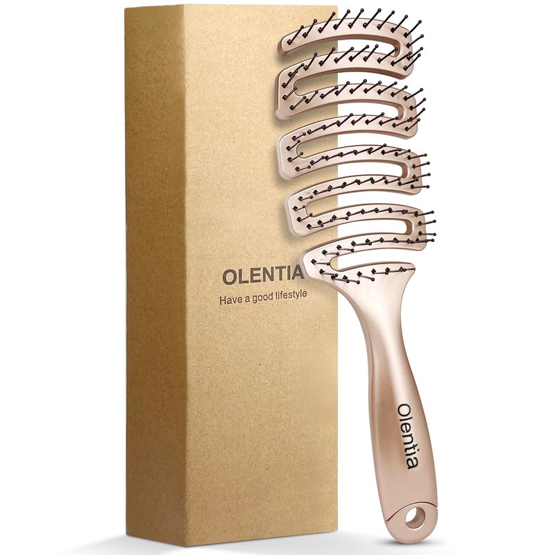 OLENTIA Flexible Vented Detangling Hair Brush, Gold, for All Hair Types - Women, Men, and Kids, Various Styles, Wet or Dry