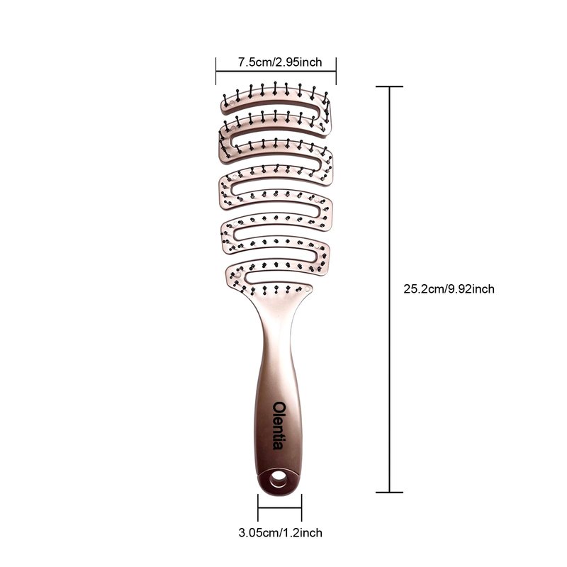 Brand:Olentia Name:Flexible Vented Hair Brush Material:ABS Color:Golden Product Features: Faster Blow Drying; Comfortable and painless; Durable and lightweight; Easy to use, comfortable to hold For all style hairs: straight, curly, thin, thick, long, short, dry or wet hair. Flexible Head Design with Advanced Bristles-Soft Post Styling Massage Flexi Hair Brush。Hair Brush for Women and Men