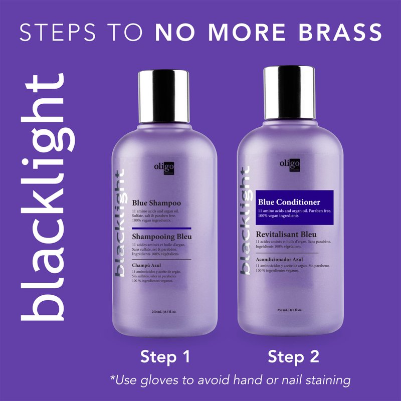 - Easy to Use: Our blue conditioner for brassy hair is easy to incorporate into your hair care routine. Simply apply a generous quantity of the blue toner to clean, damp hair after the Blacklight Shampoo. Leave on for 2 to 5 minutes and rinse.