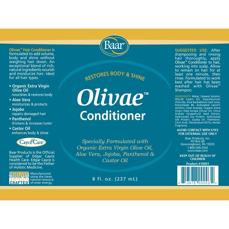 This perfect match to Olivae Shampoo includes many of the same ingredients as the shampoo, but with a little touch of castor oil extract for that no-tangles, easy-to-manage condition that we all seek. This conditioner is a must for shampooing. - Specially formulated to include Organic Olive Oil, Aloe Vera, Jojoba, Panthenol, Castor Oil, and Herbal Fragrance. - Formulated for all types of hair. - Restores body and luster.