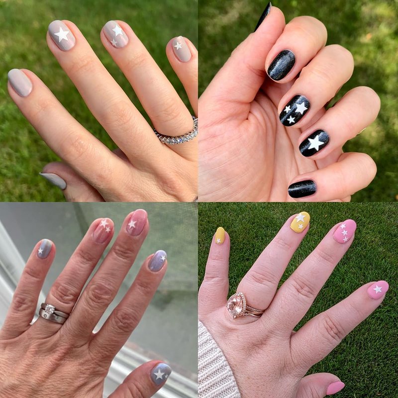 Olive & June Nail Art Stickers | Easy-to-Use Nail Designs | Nail Art Made Easy | Hand-Screened, No-Fade Ink | Accent, Mix & Match, or Cover Chipped Polish | White Stars