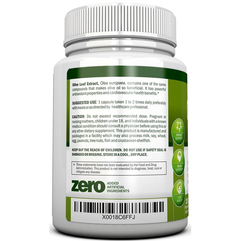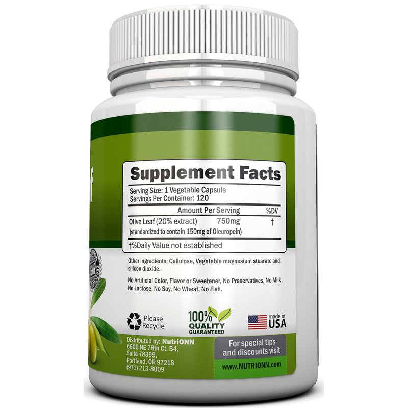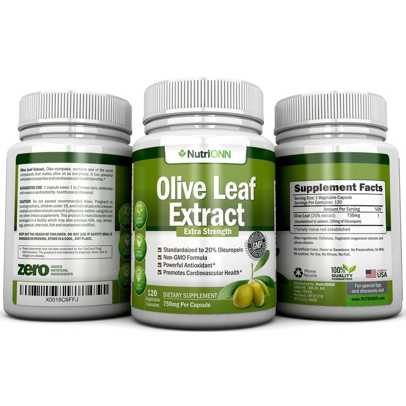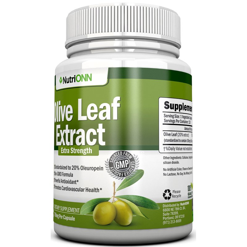 Olive Leaf Extract - 750 Mg - 120 Capsules - Extra Strength - 20% Oleuropein - Non-GMO Formula - Premium Quality From Pure Olive Leaves - Powerful Antioxidant - Great for Heart, Skin and Brain