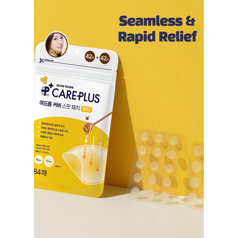 - OLIVE YOUNG Care Plus Honey Scar Cover Korean Spot Pimple Patches 1PACK (84Count) | Hydrocolloid Patch, Spot Stickers for Acne Pimple and Zits, Contains Manuka Honey