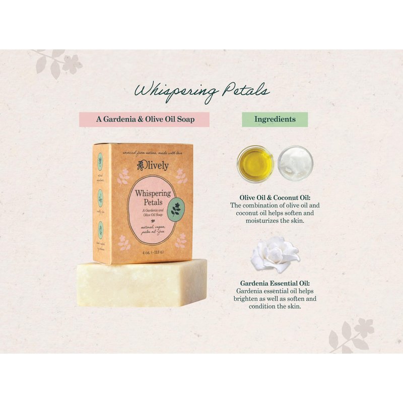 Olively Whispering Petals - All Natural Soap Bar - Soap Bar handmade with Gardenia and Olive Oil - Bar Soaps made with 100% natural ingredients - Body and Bath Soap - Vegan