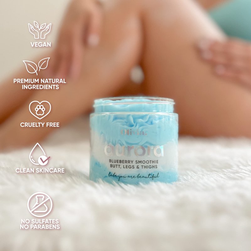 - REMOVES DULL DRY SKIN and RESTORES SKIN'S NATURAL NUTRIENTS - Olivia Aurora Blueberry Smoothie your new own personal care product that gently nourishes your skin and provides a long- lasting moisturization for a beautiful, and radiant skin. Get your booty and legs soft, fresh, and smooth - It's just perfect as a gift for yourself or your bestie