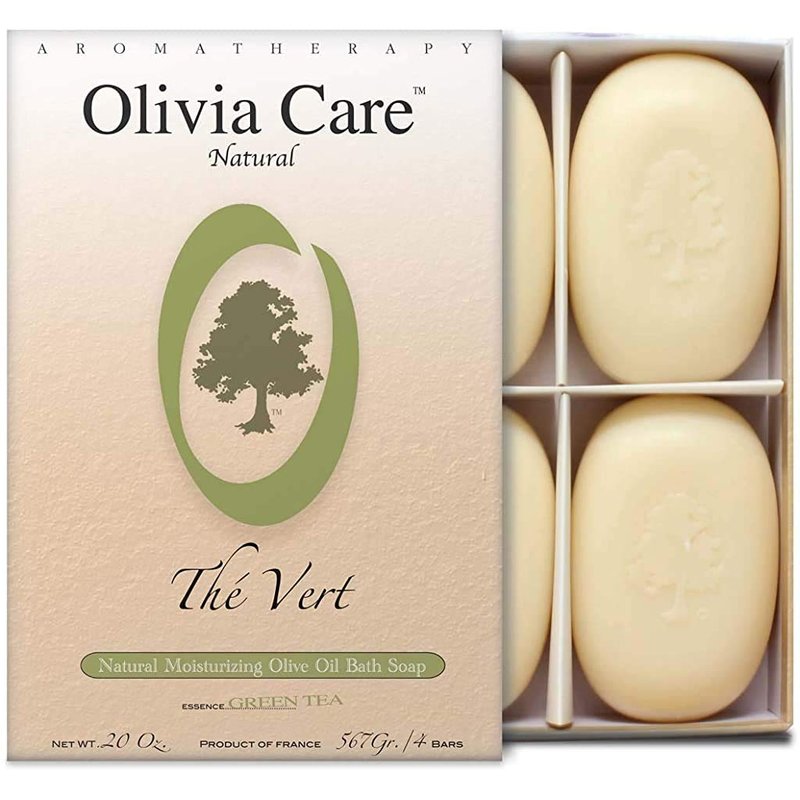 Olivia Care Bath & Body Bar Green Tea Soap 4 Pack Gift Box Organic, Vegan & Natural Contains Olive Oil Repairs, Hydrates, Moisturizes & Deep Cleans Good for Sensitive Dry Skin Made in USA