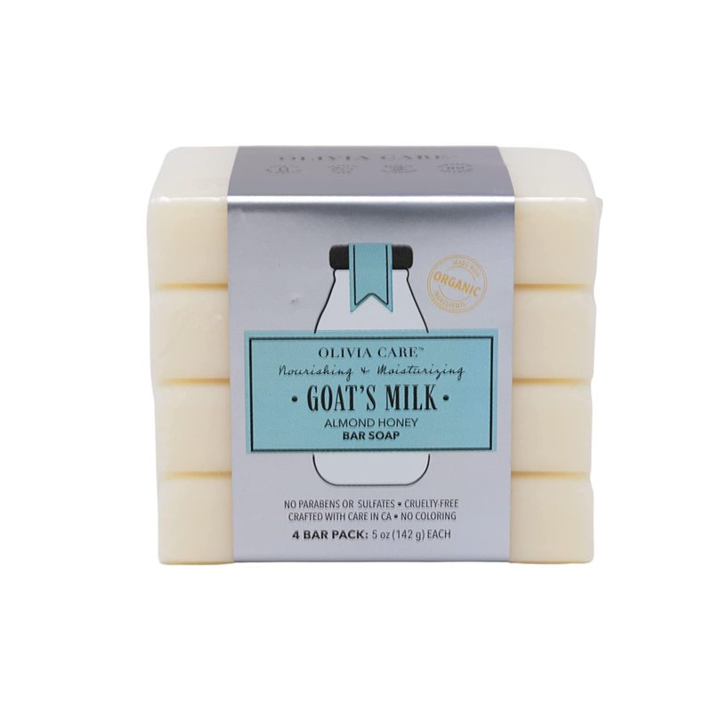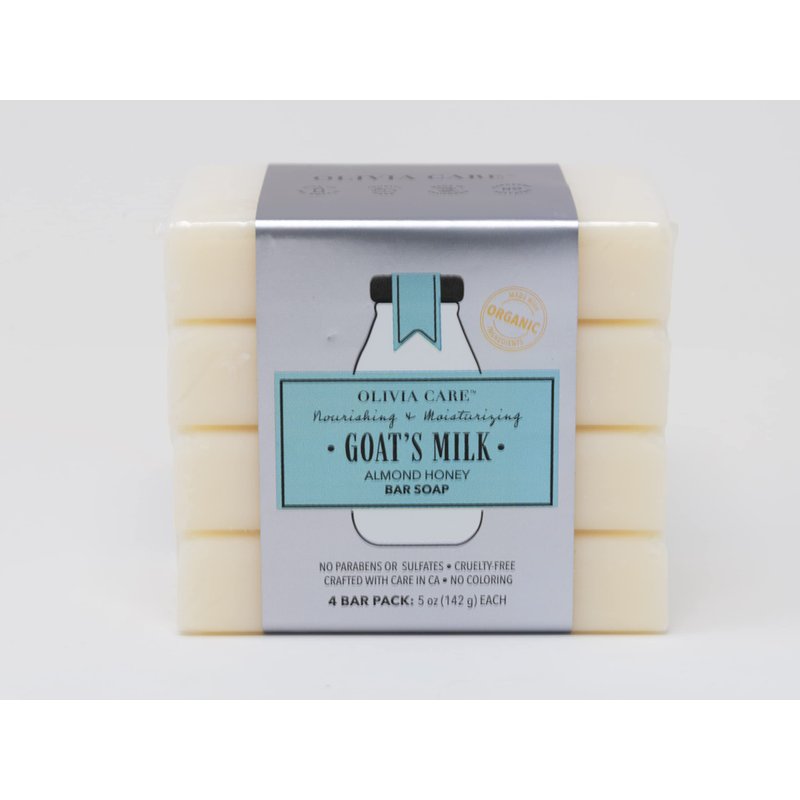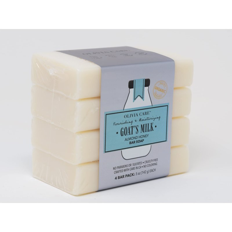 Olivia Care Goat's Milk Organic Bar Soap 4 Pack Made in the USA (Almond Honey)