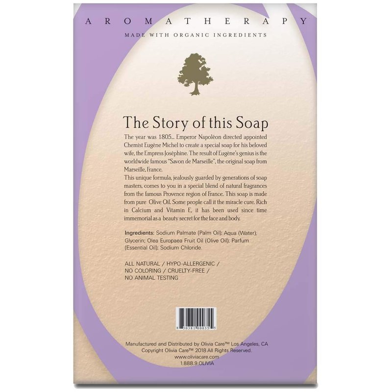 Olivia Care Lavender Bar Soap-4 pack box set - 100% Natural Ingredients, Organic, Vegan - For Face & Body, Cold-pressed Triple-Milled, Hydrating, Moisturizing, Infused Calcium & Vitamins - 4 X 5 oz