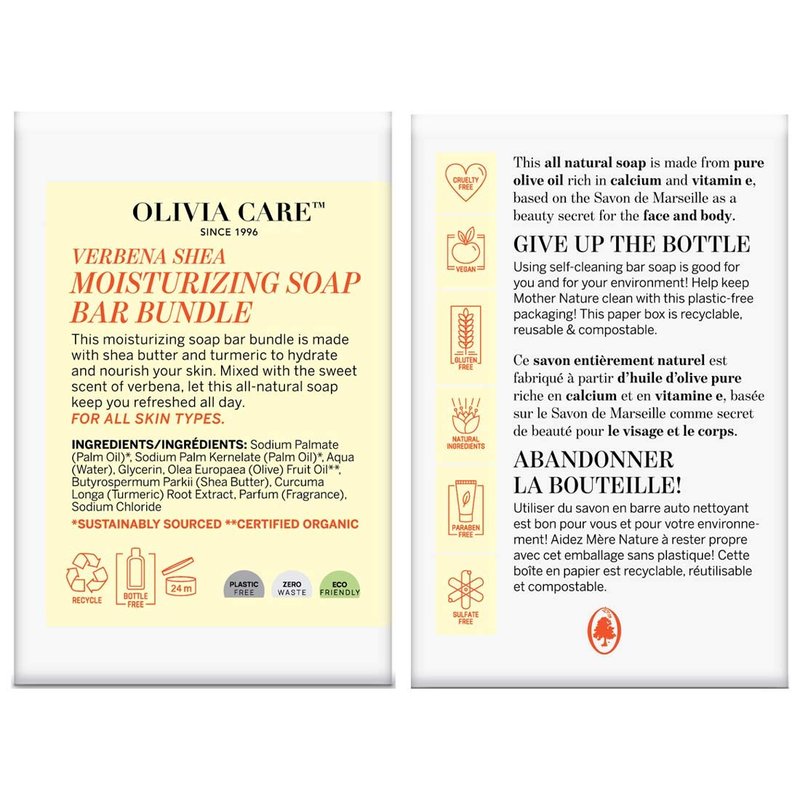 Olivia Care Moisturizing Bar Soap Pack by 100% Natural & Organic Infused with Verbena, Shea Butter & Turmeric Deep Clean, Refreshing, Moisturizing & Hydrating Verbena Shea (Pack of 3)